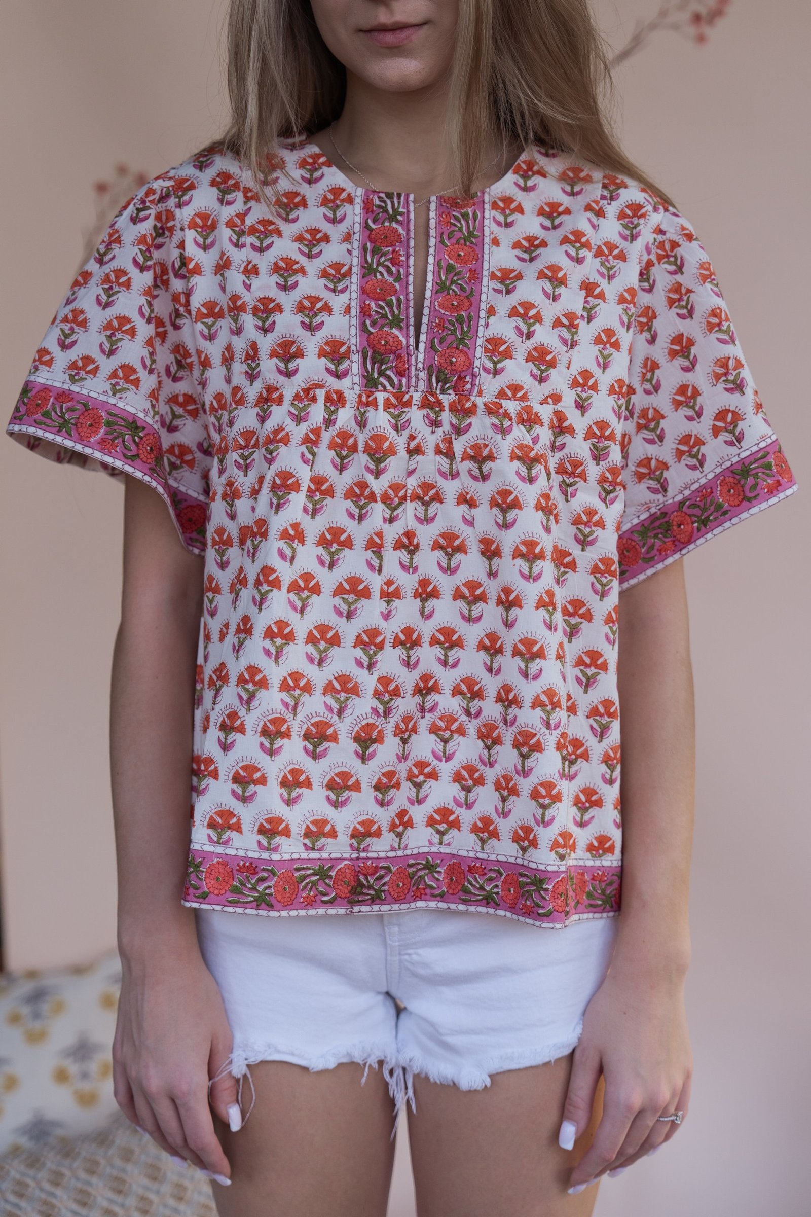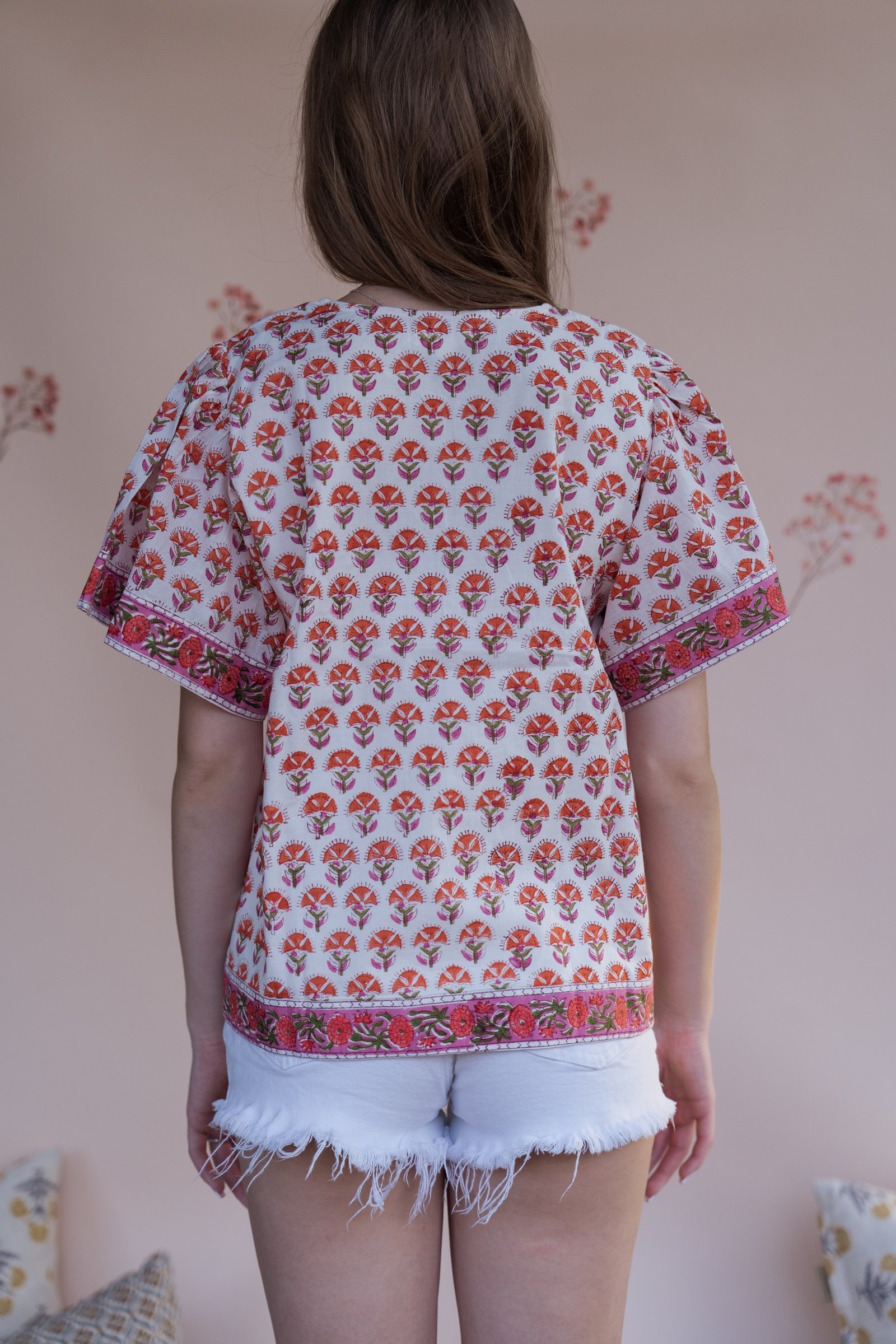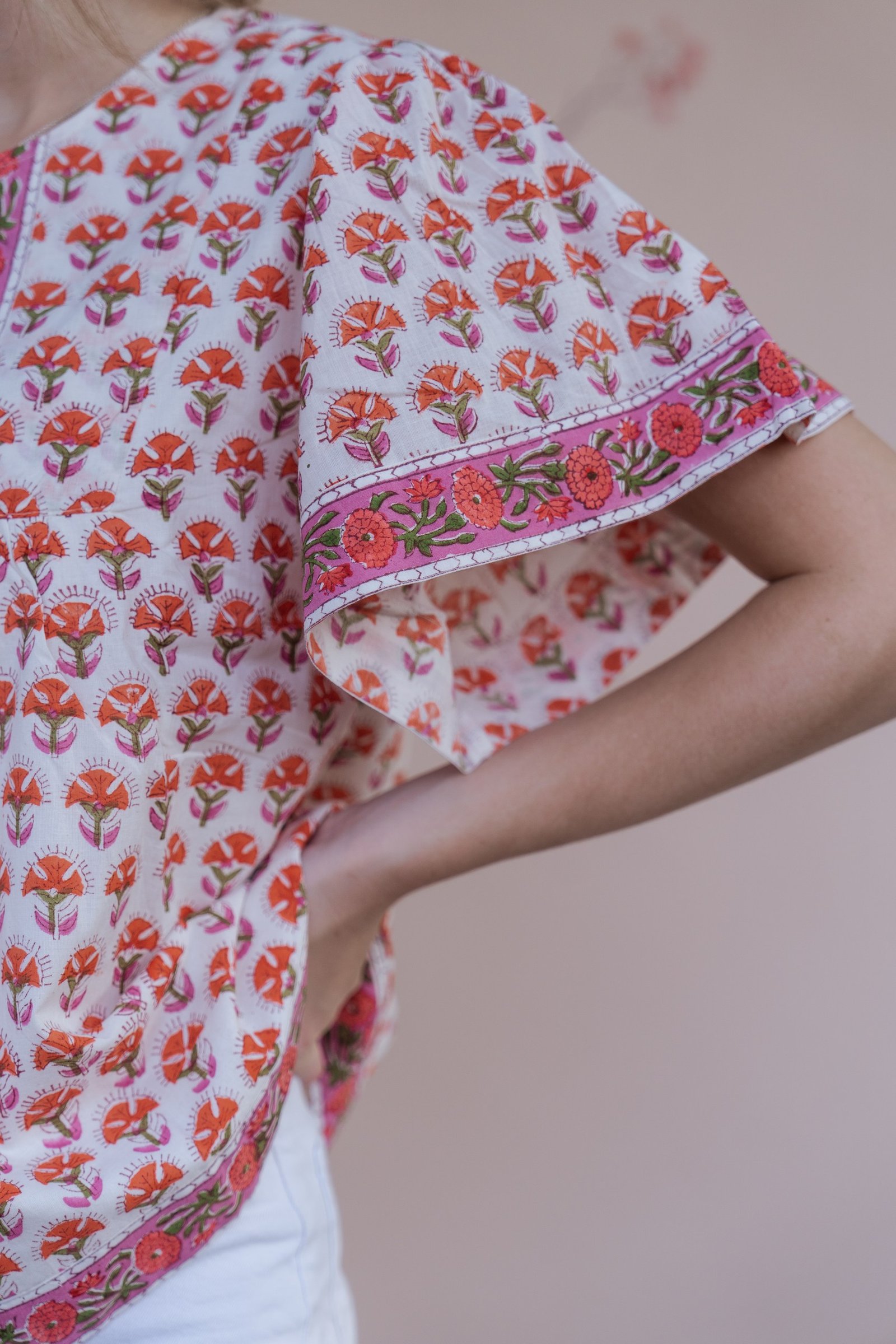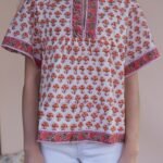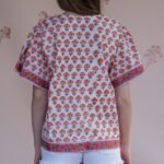 Elevate your everyday wardrobe with our hand-block printed cotton blouse. Crafted in breathable, soft cotton, this blouse brings a romantic vintage charm with its relaxed silhouette.