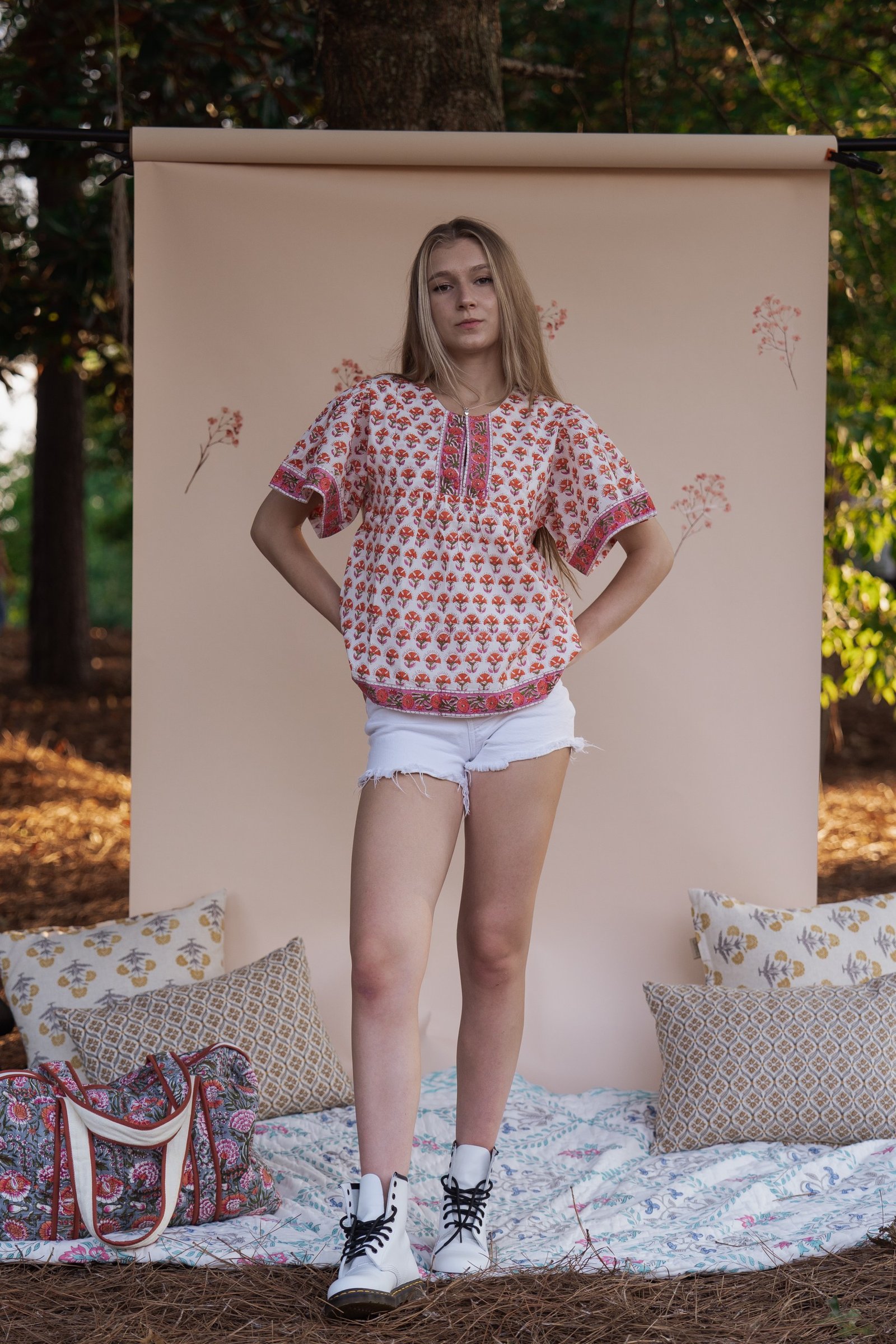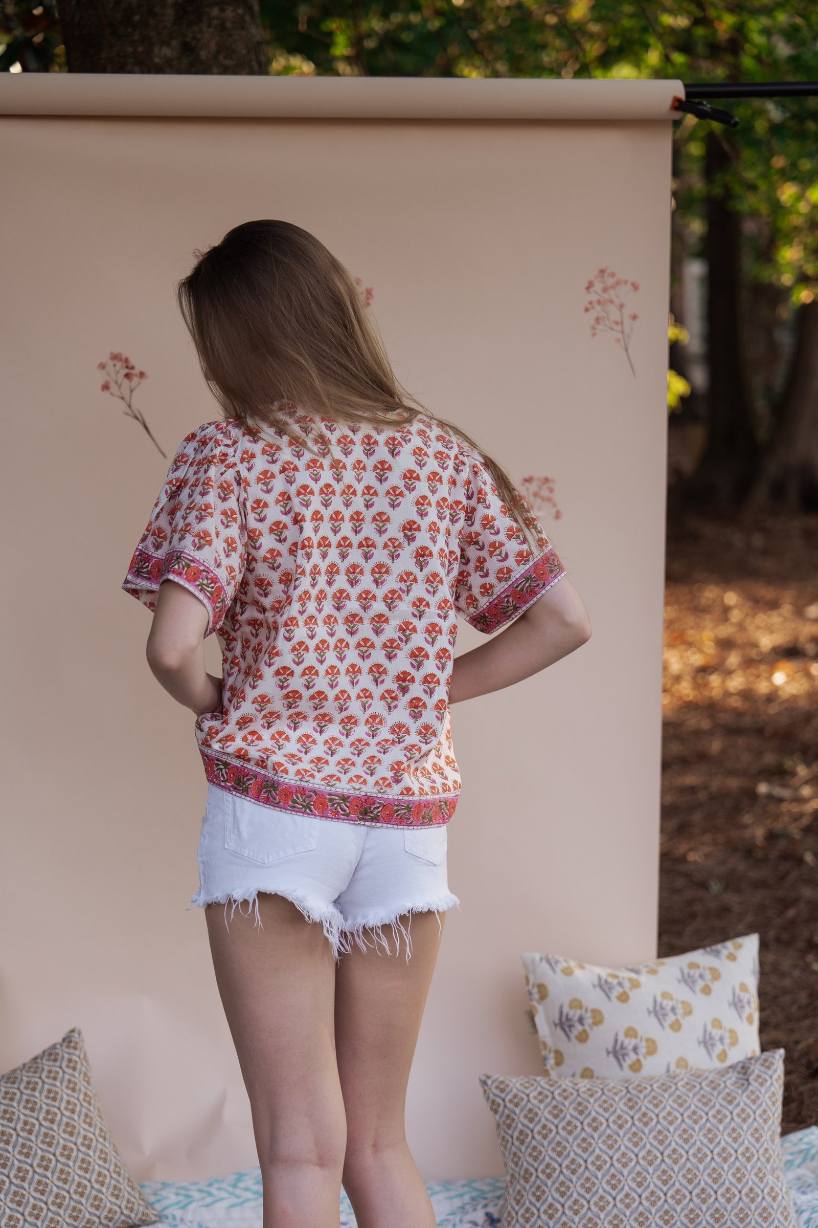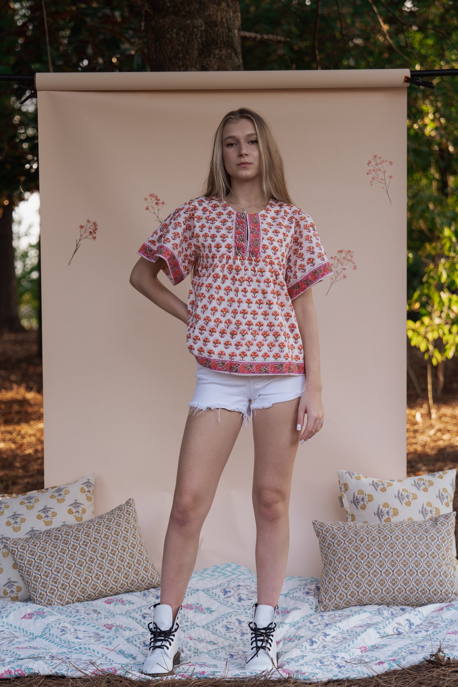 Elevate your everyday wardrobe with our hand-block printed cotton blouse. Crafted in breathable, soft cotton, this blouse brings a romantic vintage charm with its relaxed silhouette.