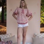 Crimson Bloom Top -Hand-Block Printed Cotton Top
