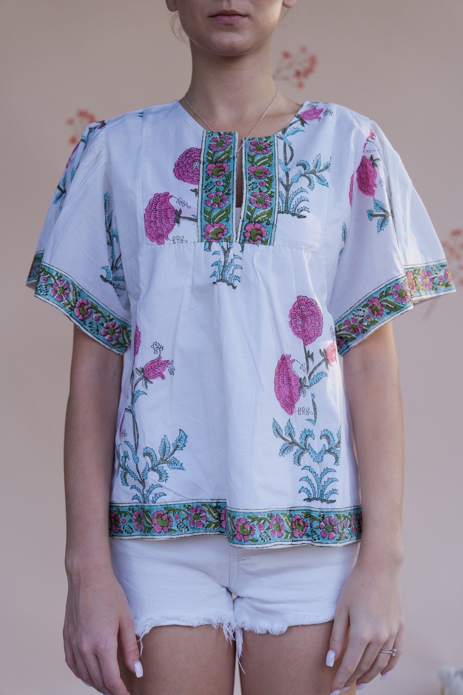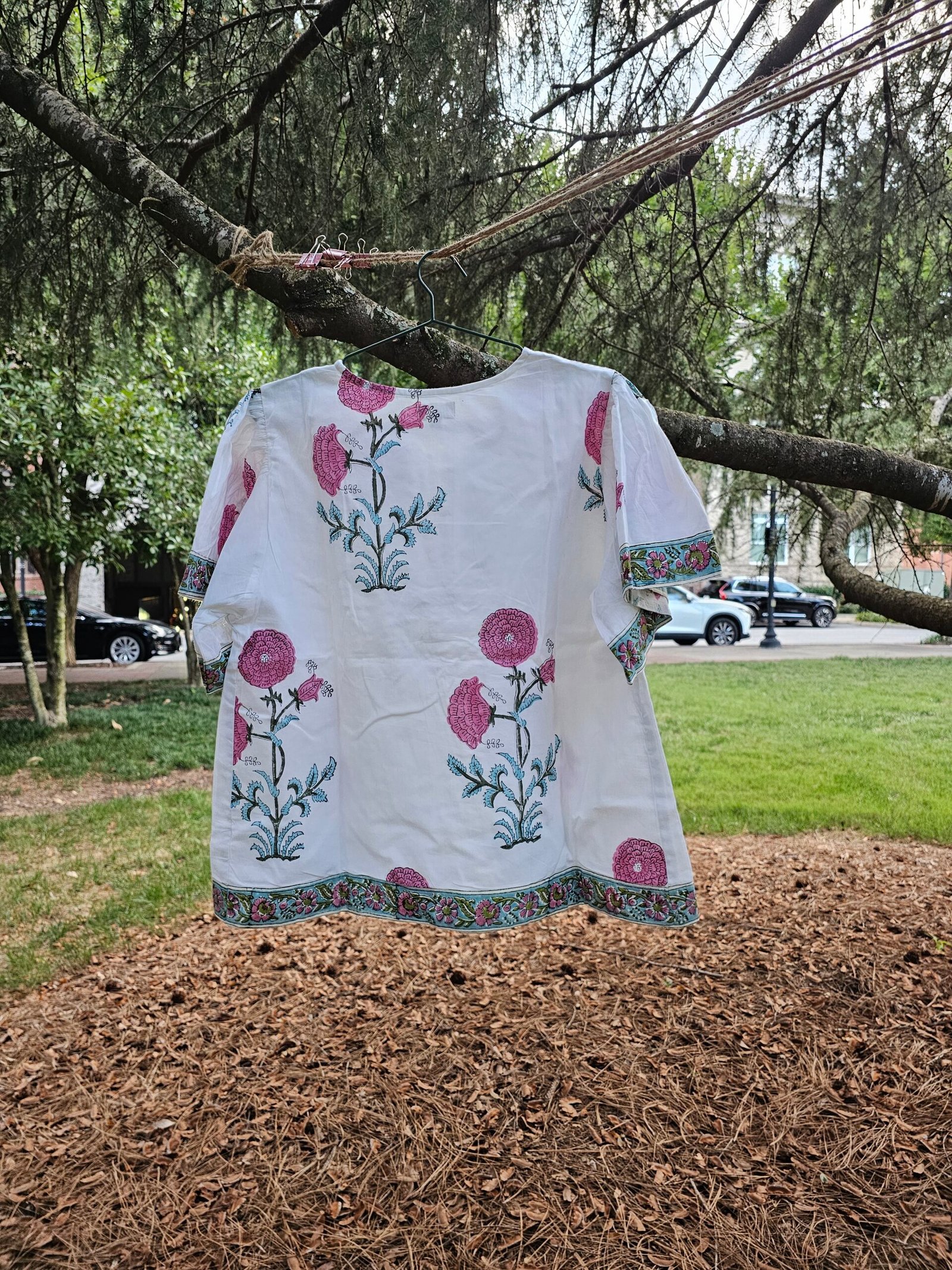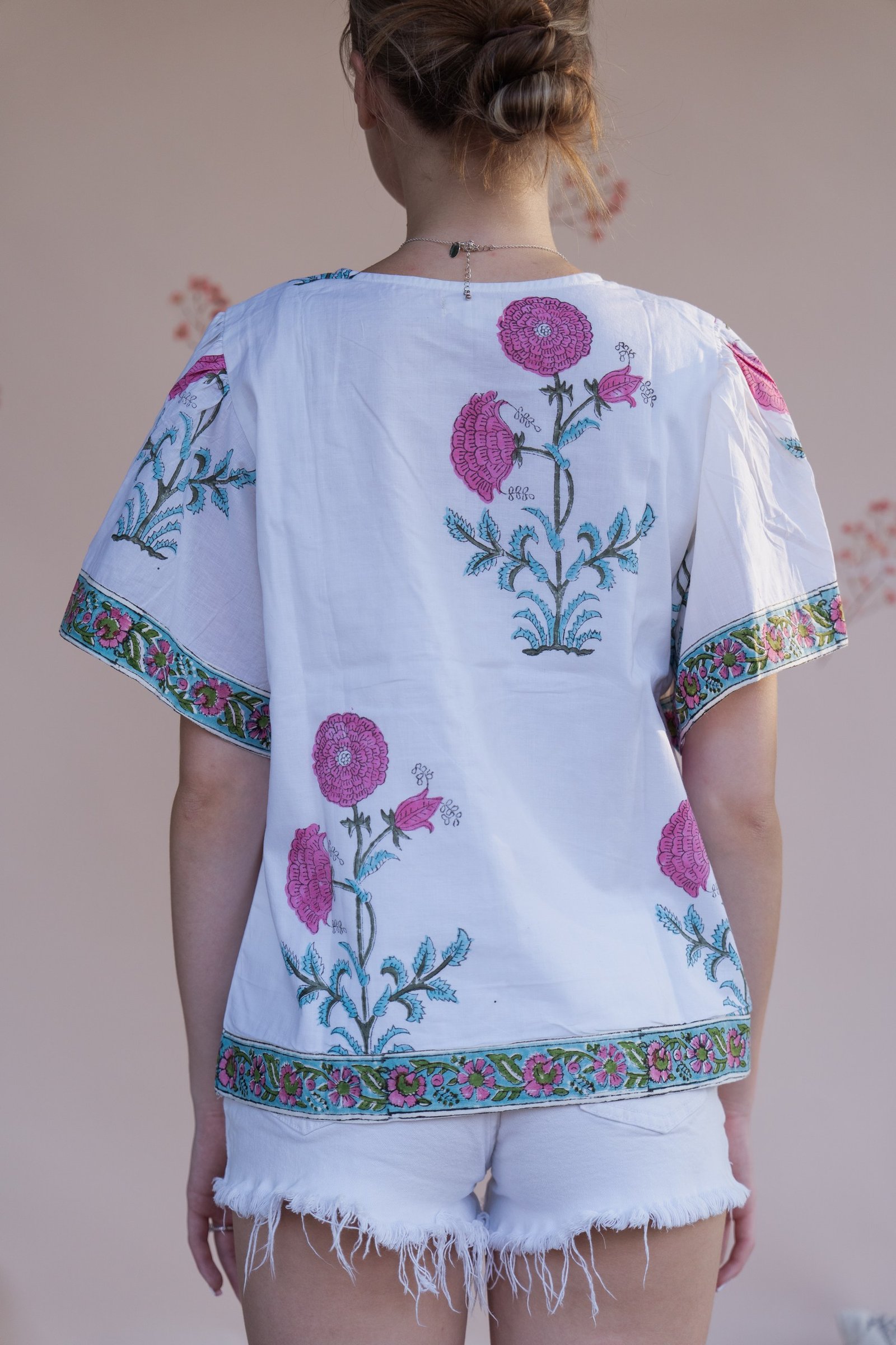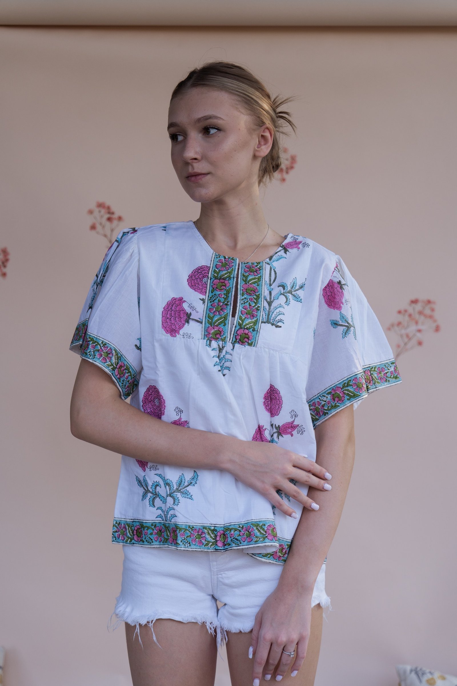 Gulab Bagh Top -Hand-Block Printed Cotton Top