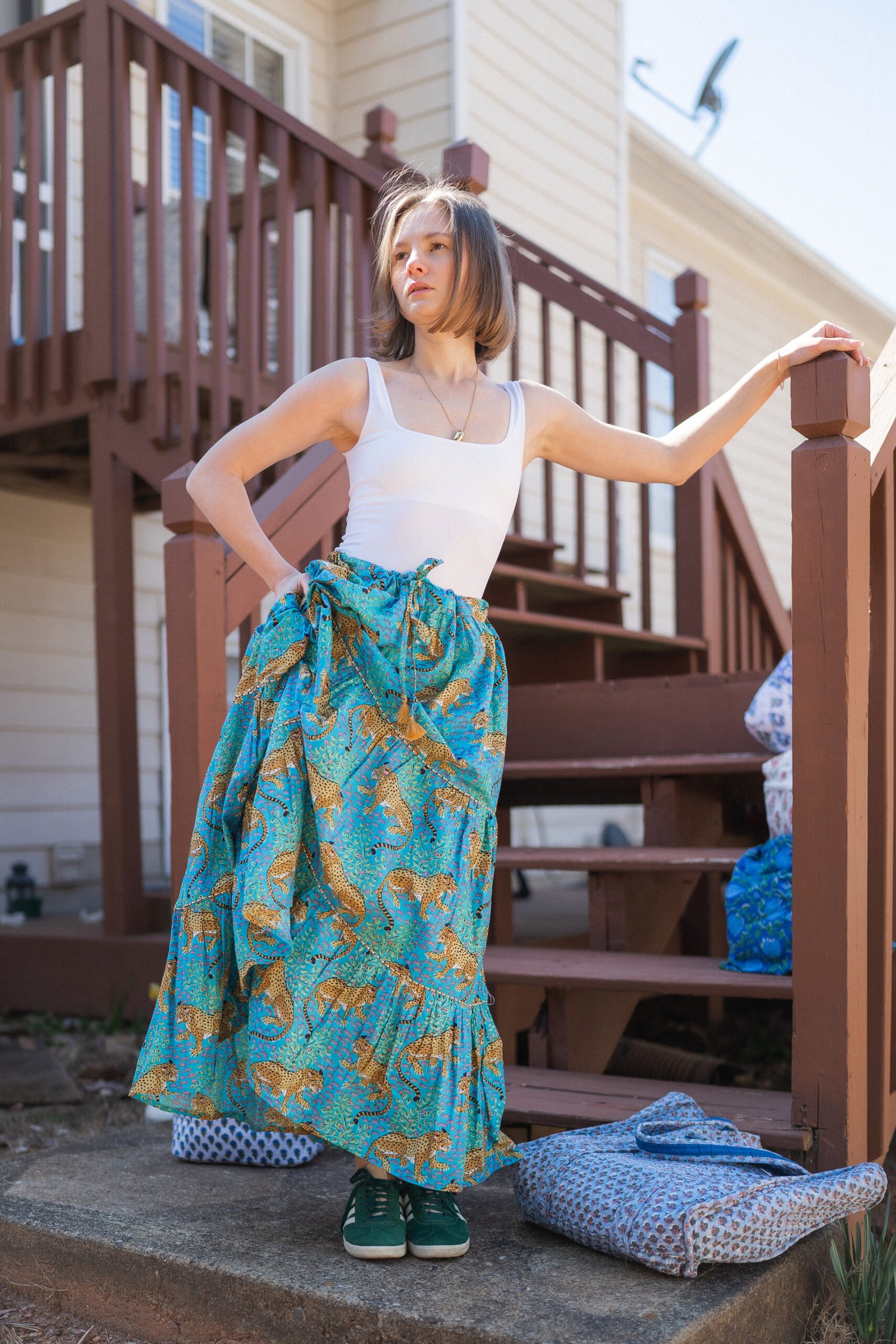Each piece carries the unique imperfections and beauty of handmade artistry, making it one-of-a-kind addition to your wardrobe. Pair it with a simple blouse or a coordinated block-printed top for a stunning bohemian look.