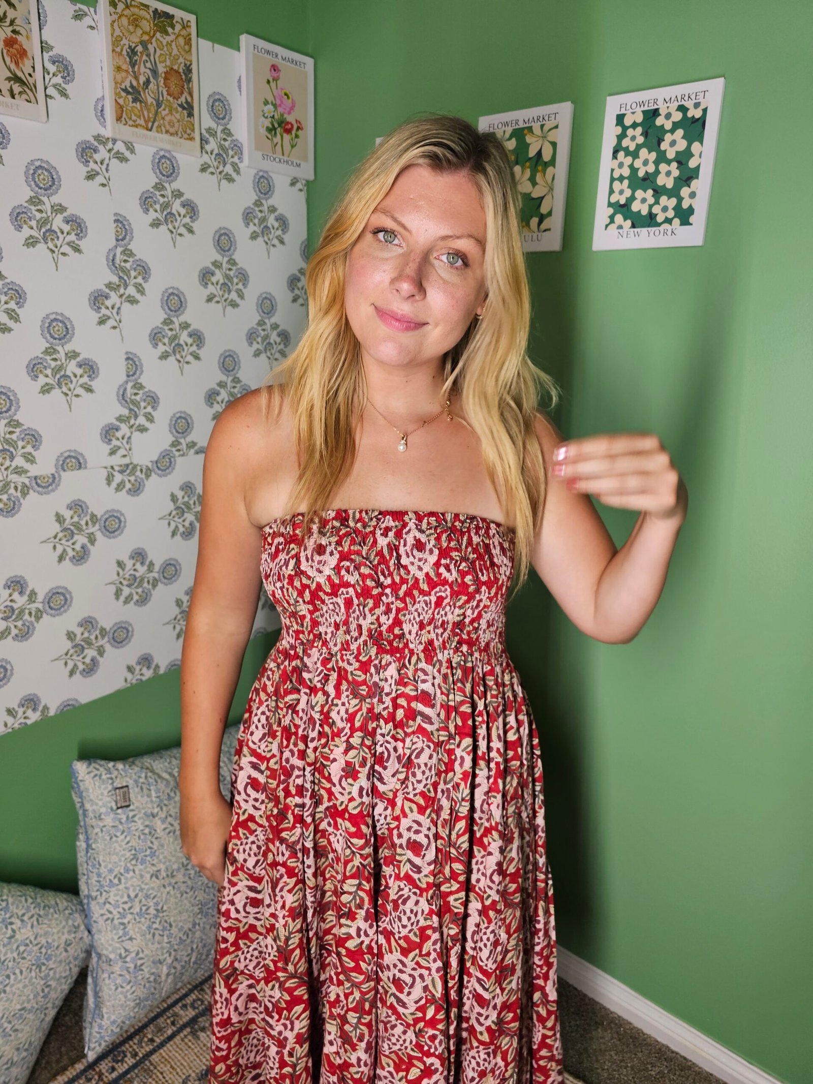 A comfortable smocked waist ensures a flexible fit, making it perfect for everyday wear or special occasions.