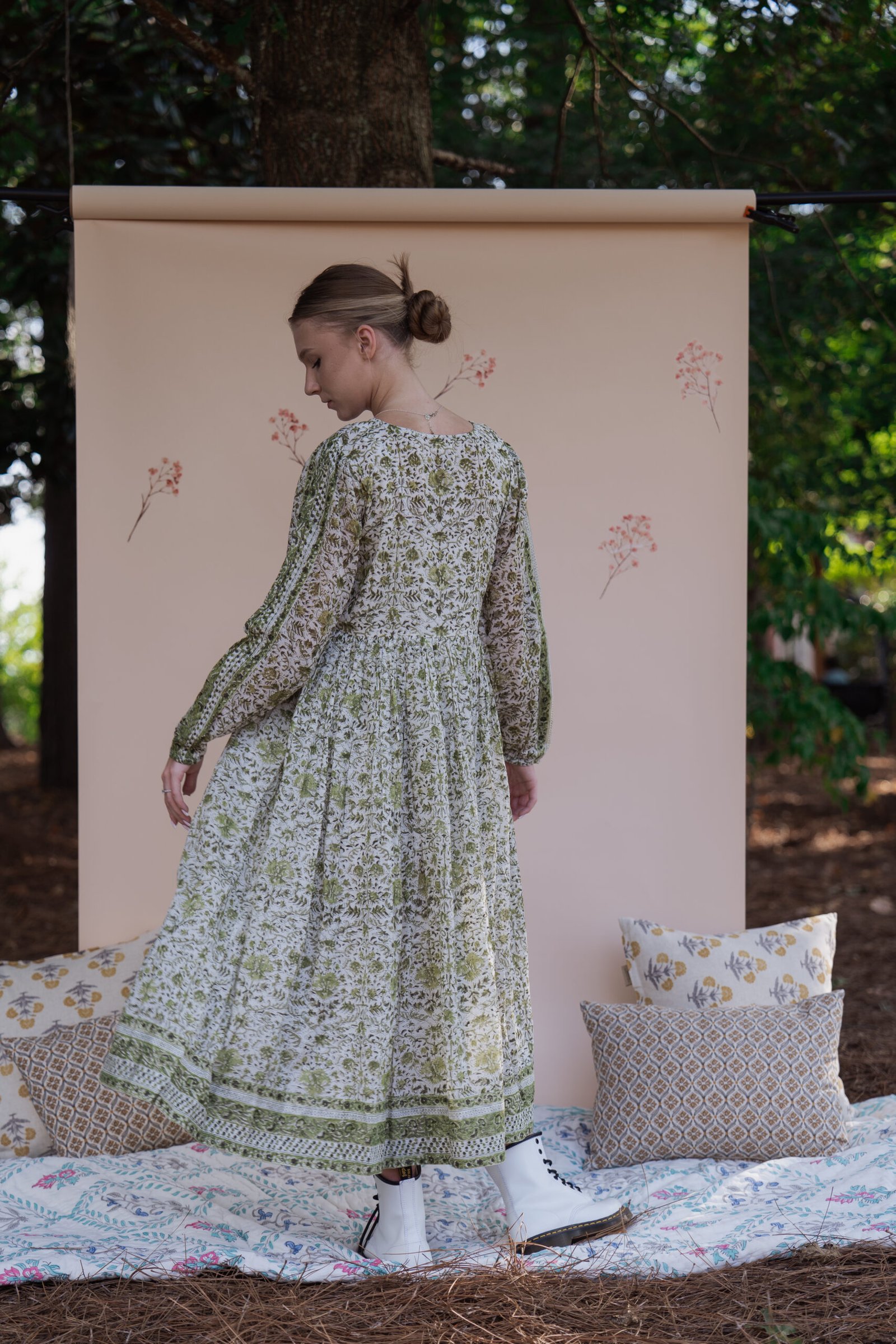A graceful hand block-printed maxi dress crafted in soft, breathable cotton.